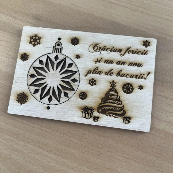Felicitare din lemn personalizata cu glob detașabil